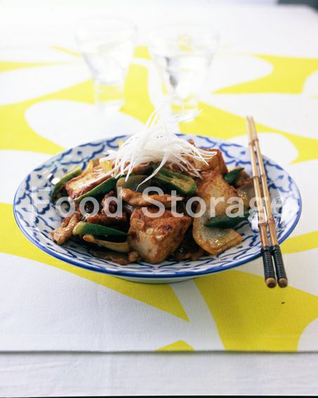 | オクラと豚肉、厚揚げのピーナッツ炒め |