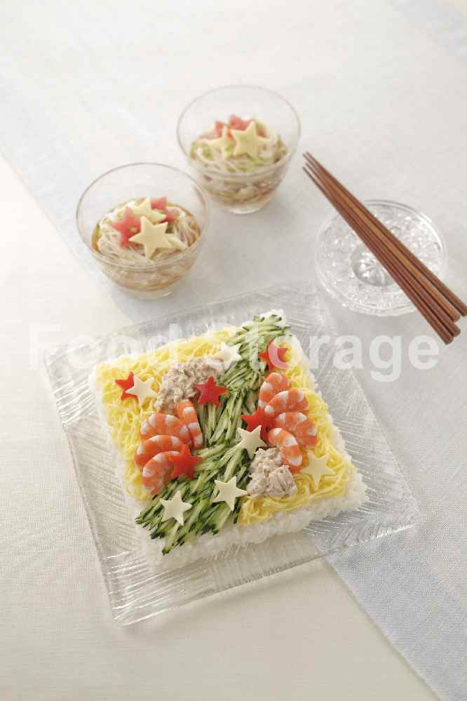 | 【献立】お星さま入りそうめん+七夕ちらし寿司 |