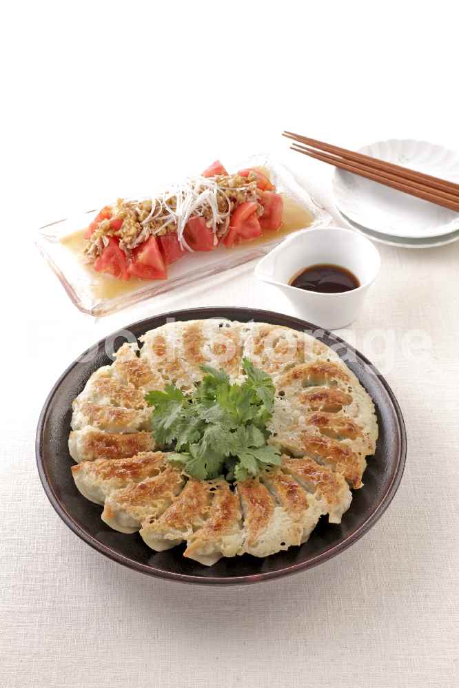 | 【献立】基本の餃子+トマトのツナのせ中華サラダ |