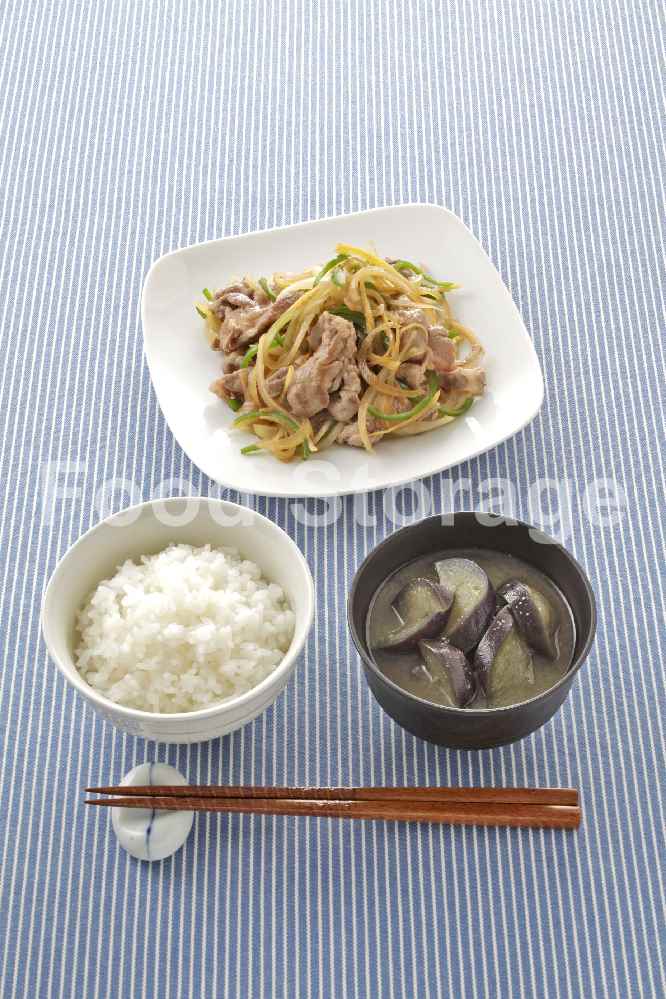 | 【献立】豚肉とピーマンの生姜炒め(+なすのみそ汁、ごはん) |
