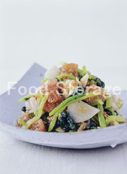 | 小松菜とかぶ、ツナのトマトあえ |