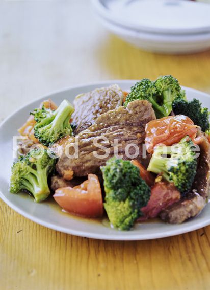 | 牛肉とトマト、ブロッコリーのオイスターソース炒め |