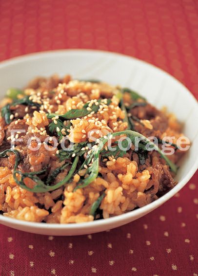 | 牛肉と春菊の混ぜご飯 |