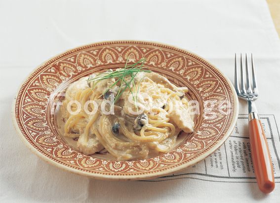 | きのことほたての明太子クリームパスタ |