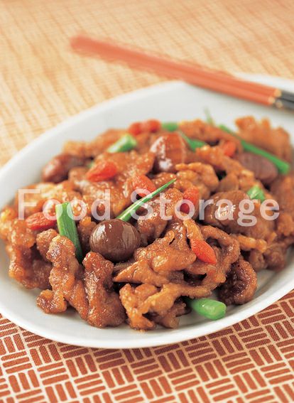 | 甘栗と豚肉のオイスターソース炒め |