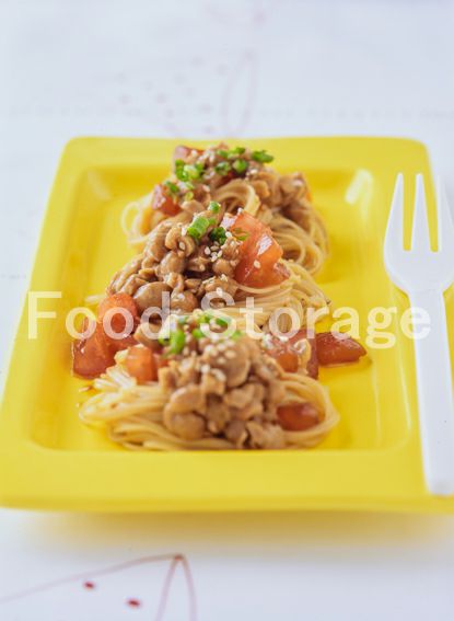| 牛そぼろとみょうがの冷製スープパスタ |