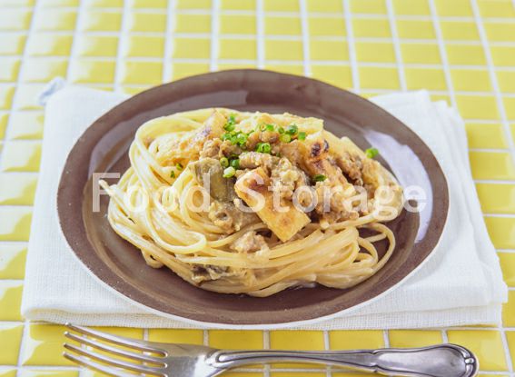 | 焼きなすと油揚げの白ごまソースパスタ |