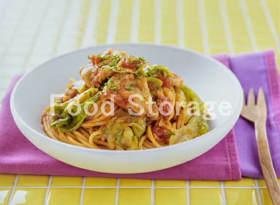 | 豚肉とレタスのトマトソースパスタ |