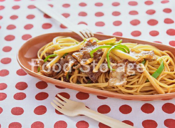 | 豚肉とたけのこの中華風パスタ |