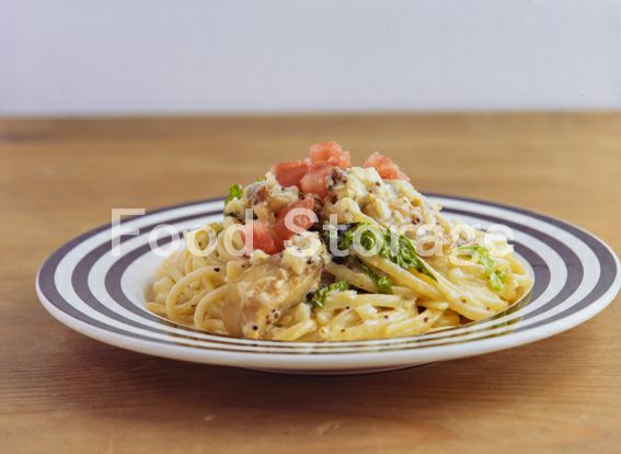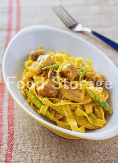 | 鶏肉とアスパラガスのカレークリームパスタ |
