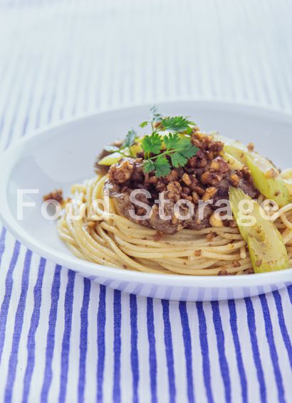 | 牛肉とセロリのアーモンドソースパスタ |