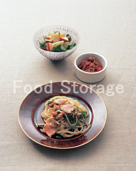 | スモークサーモンと水菜のクリームパスタの献立 |