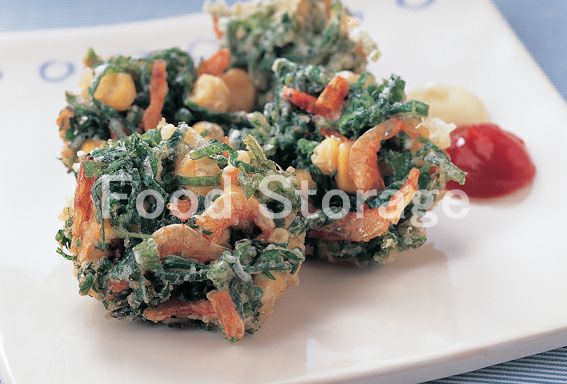 | モロヘイヤとさくらえびの洋風かき揚げ |