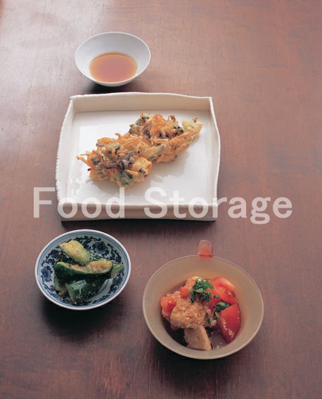 | 山菜とほたてのかき揚げの献立 |