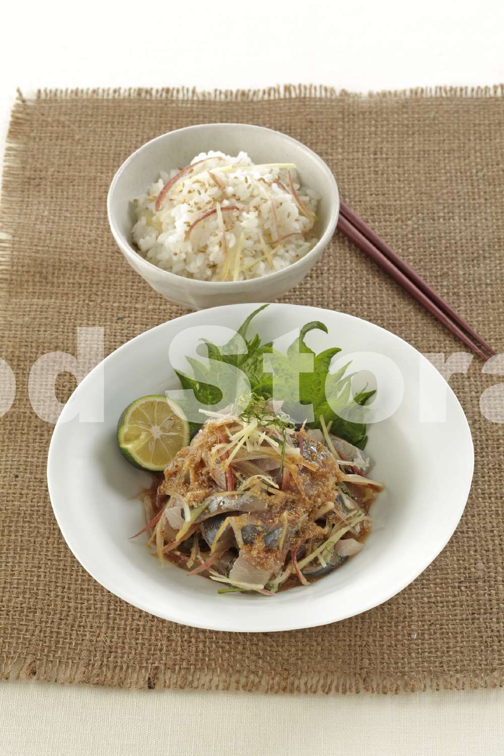 | 【献立】あじのごまだれがけ+薬味混ぜごはん |