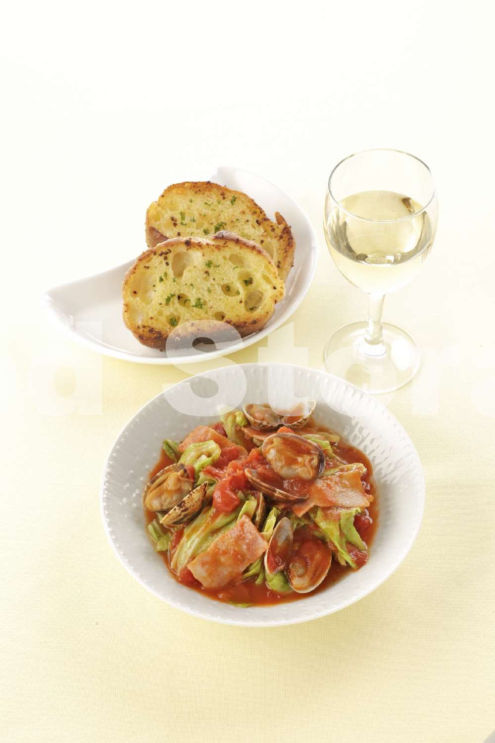| 【献立】あさりとベーコンのトマト煮+ガリバタトースト |