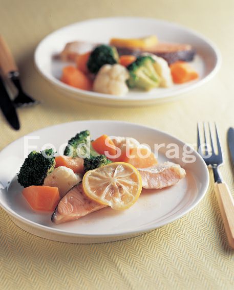 | 鮭と温野菜のレンジ蒸し |