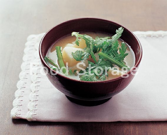 | 春菊と山いものみそ汁 |