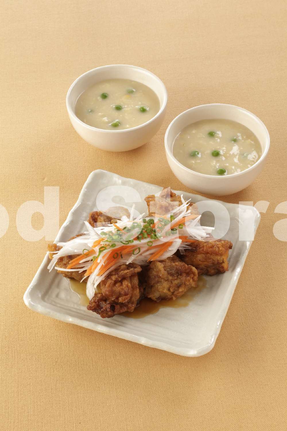 | 【献立】甘酢だれがけチキン竜田+中華風コーンクリームスープ |