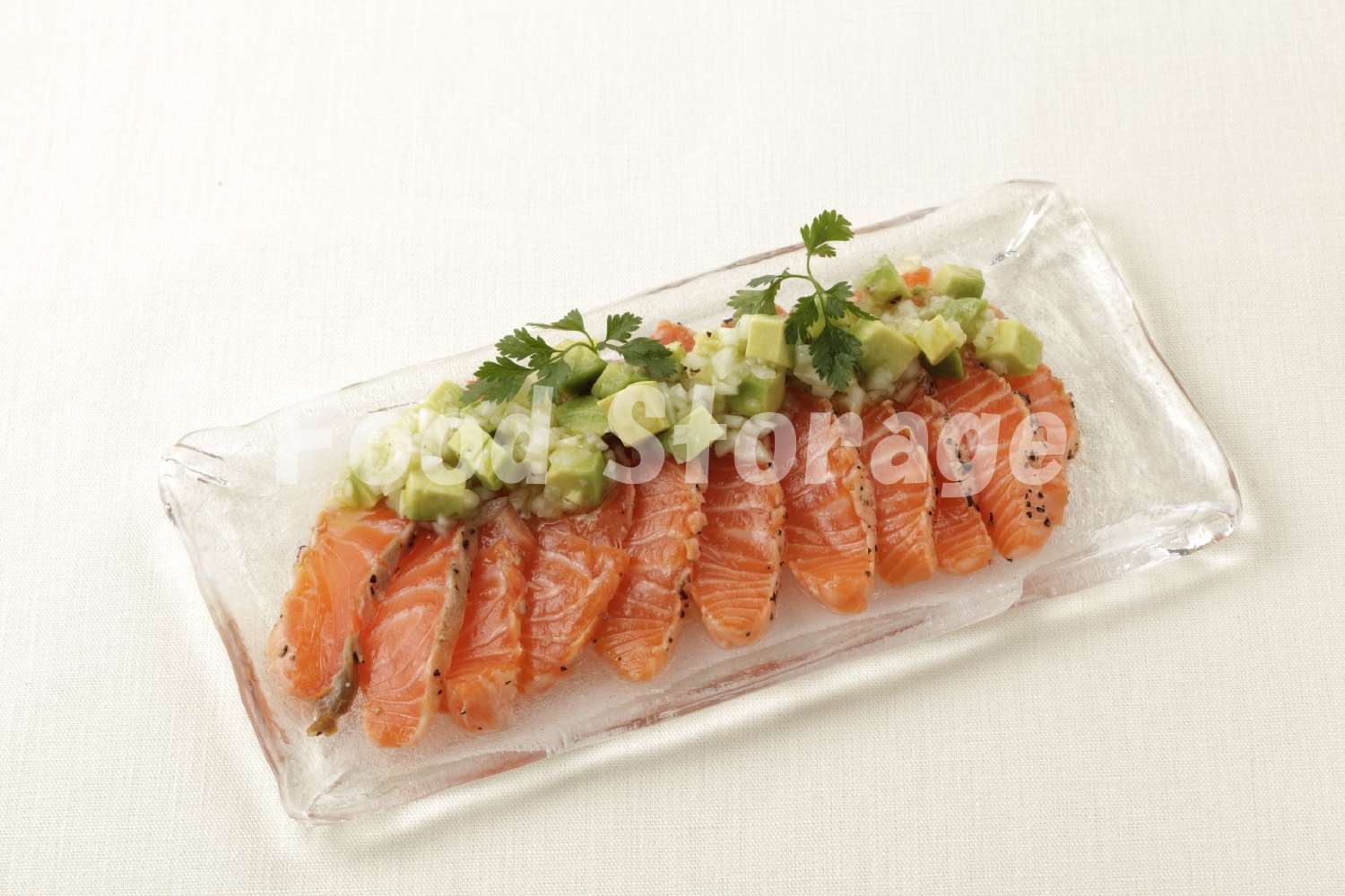 | 【献立】たたきサーモンのアボカドソースのせ&グリーンピースのチャウダースープ |