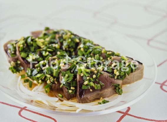 | かつおのたたき にらポン酢だれ |