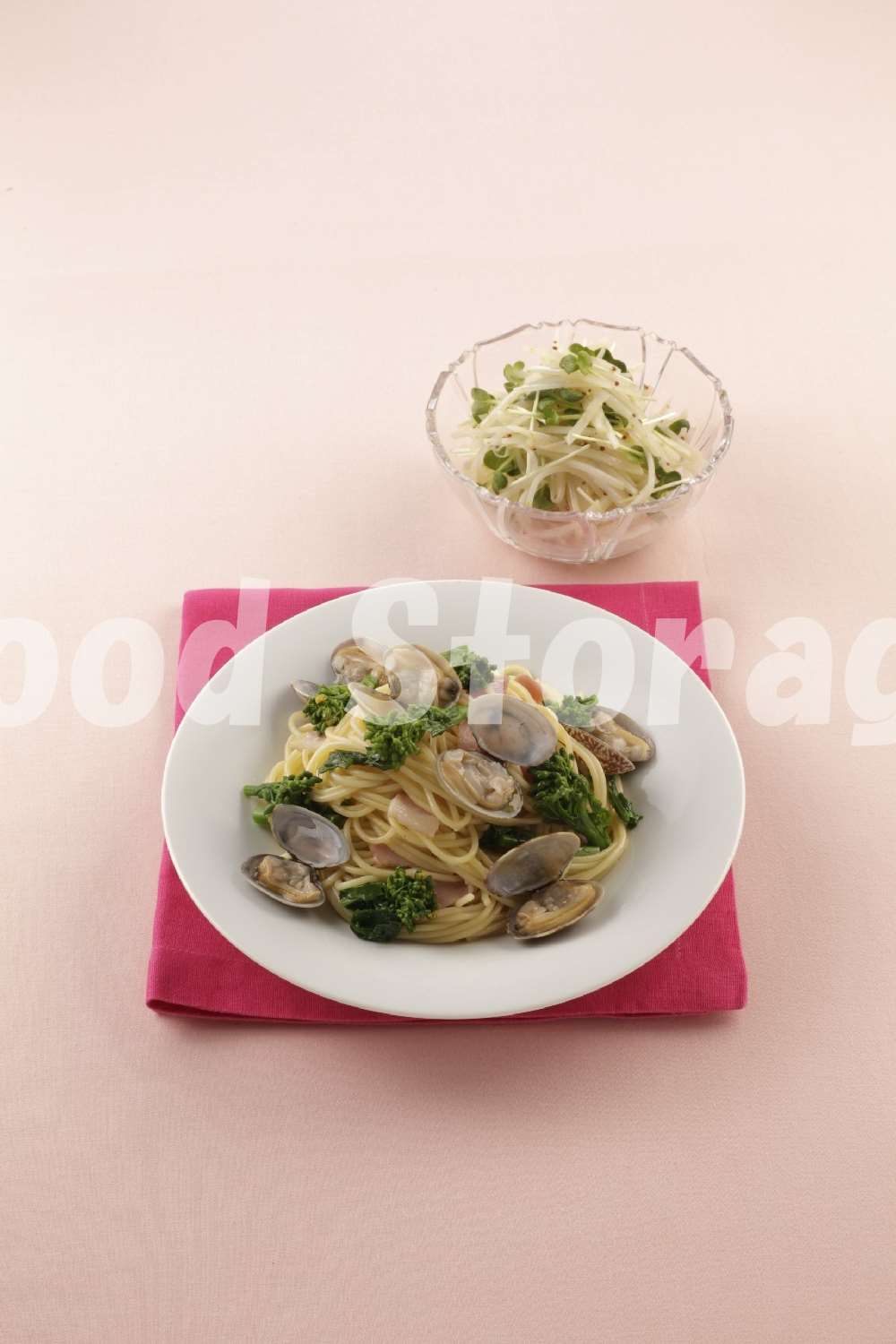 | 【献立】あさりと菜の花のパスタ&新じゃがサラダ |
