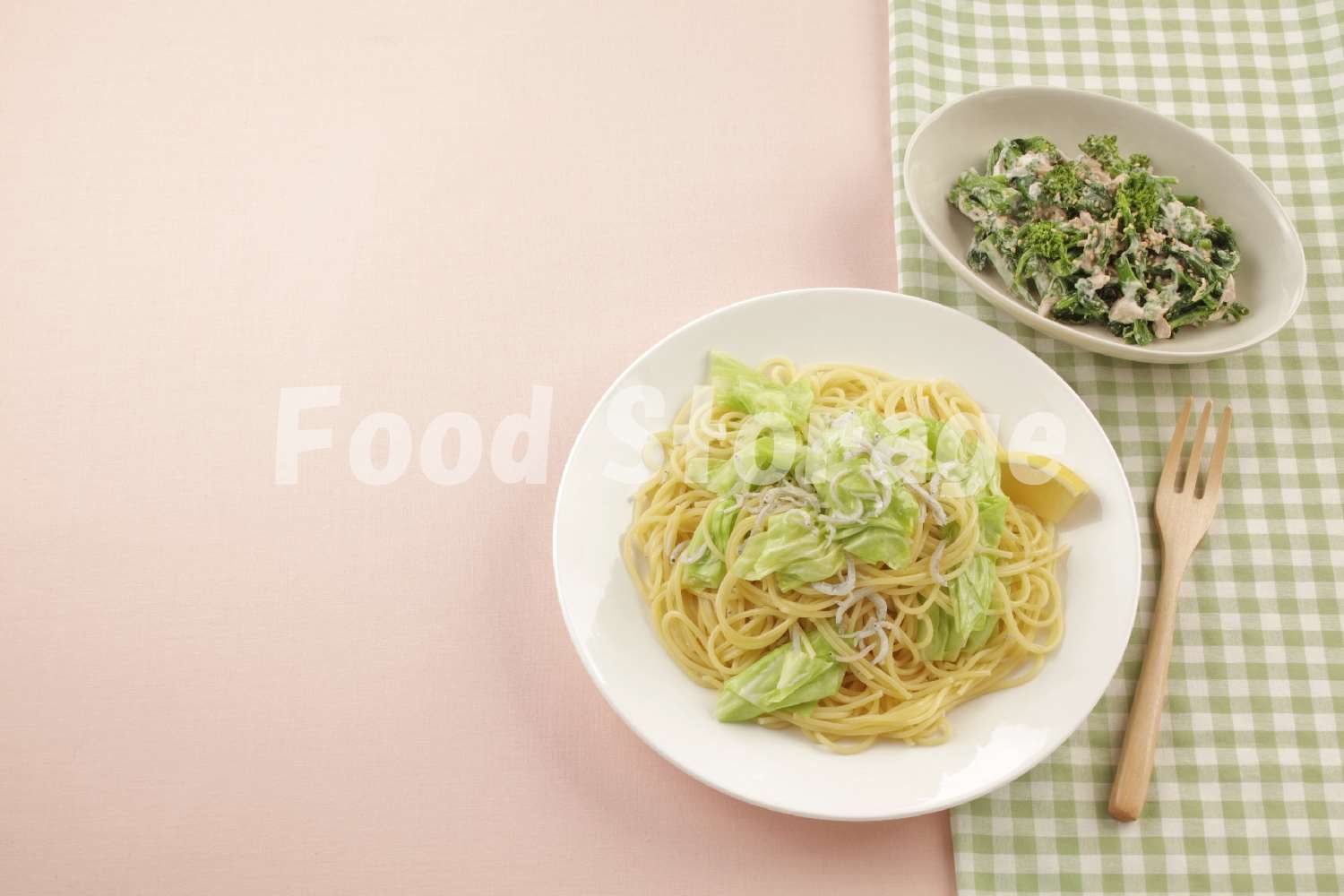 | 【献立】春キャベツとしらすの和風パスタ&菜の花とツナのサラダ |
