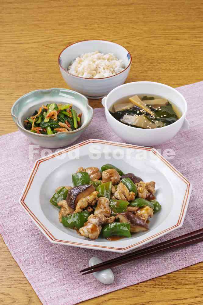 | 【糖質制限】鶏肉とピーマンの黒酢炒めの献立 |